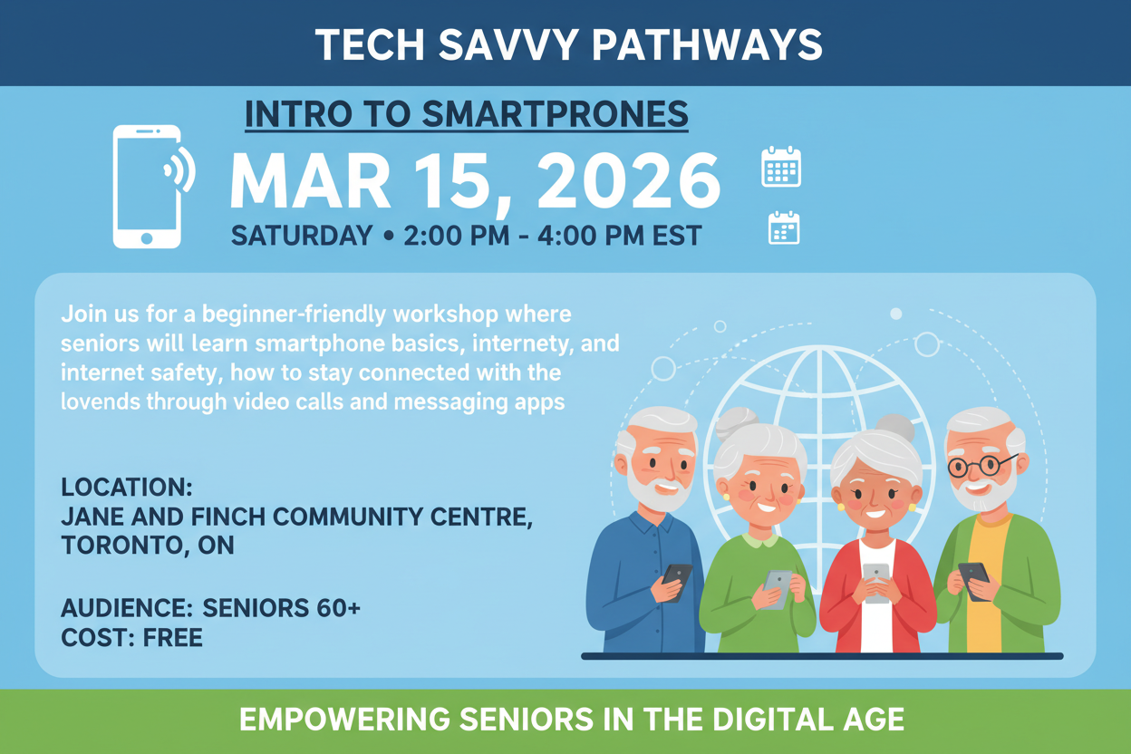 Join us for a beginner-friendly workshop where seniors will learn smartphone basics, internet safety, and how to stay connected.